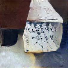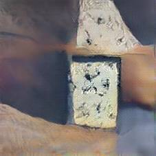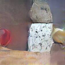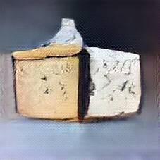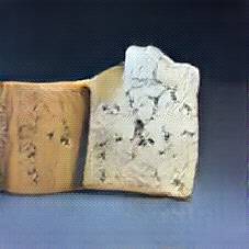 Below are 40 iterations of showing how the neural model learned to represent this class. The visualizations below show the maximally activated representations of what makes Bleu d'Auvergne look like Bleu d'Auvergne