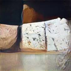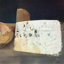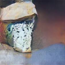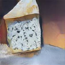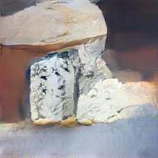 Below are 40 iterations of showing how the neural model learned to represent this class. The visualizations below show the maximally activated representations of what makes Bleu d'Auvergne look like Bleu d'Auvergne