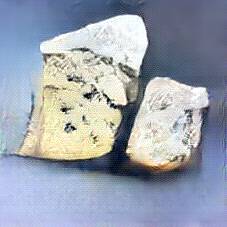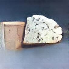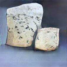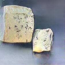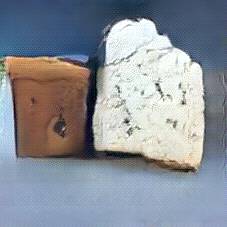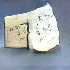 Below are 40 iterations of showing how the neural model learned to represent this class. The visualizations below show the maximally activated representations of what makes Bleu d'Auvergne look like Bleu d'Auvergne