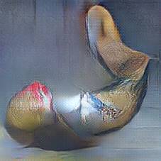 Below are 40 iterations of showing how the neural model learned to represent this class. The visualizations below show the maximally activated representations of what makes Wooden Shoes look like Wooden Shoes