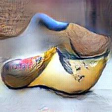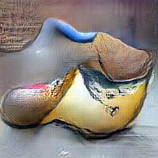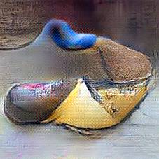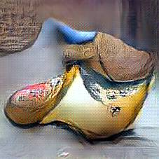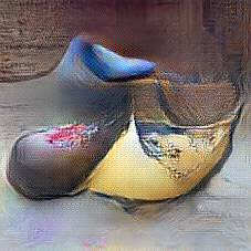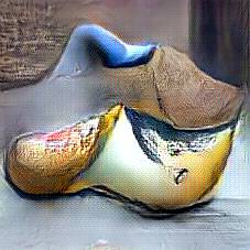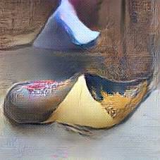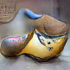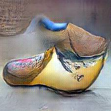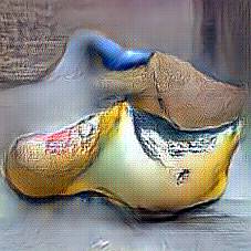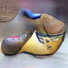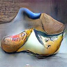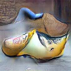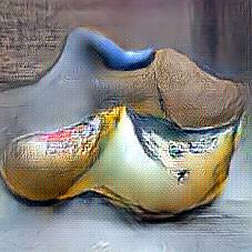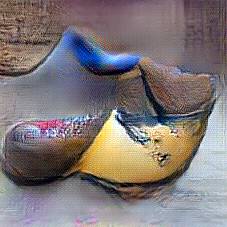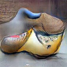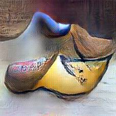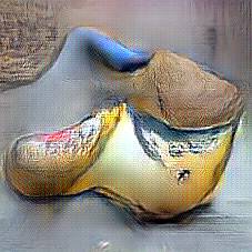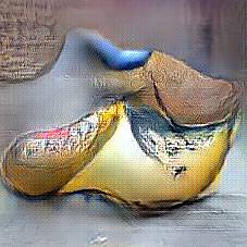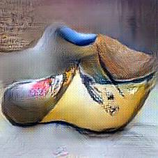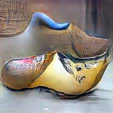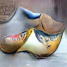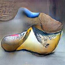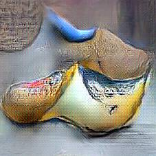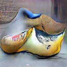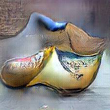 Below are 40 iterations of showing how the neural model learned to represent this class. The visualizations below show the maximally activated representations of what makes Wooden Shoes look like Wooden Shoes