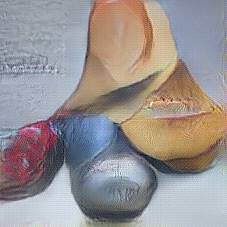 Below are 40 iterations of showing how the neural model learned to represent this class. The visualizations below show the maximally activated representations of what makes Wooden Shoes look like Wooden Shoes