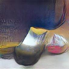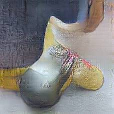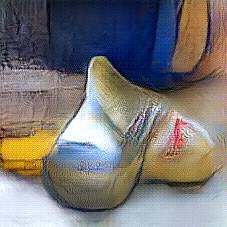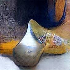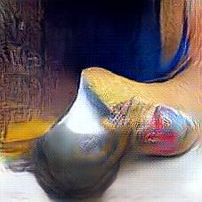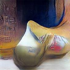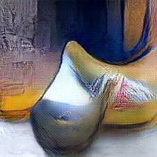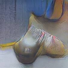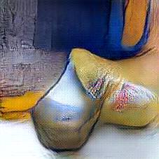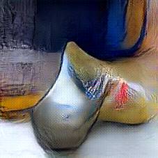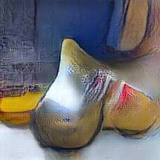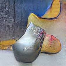 Below are 40 iterations of showing how the neural model learned to represent this class. The visualizations below show the maximally activated representations of what makes Wooden Shoes look like Wooden Shoes