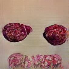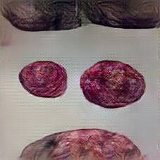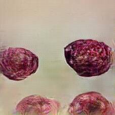 Below are 40 iterations of showing how the neural model learned to represent this class. The visualizations below show the maximally activated representations of what makes Blood Sausage look like Blood Sausage
