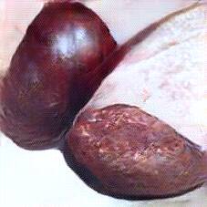 Below are 40 iterations of showing how the neural model learned to represent this class. The visualizations below show the maximally activated representations of what makes Blood Sausage look like Blood Sausage