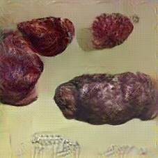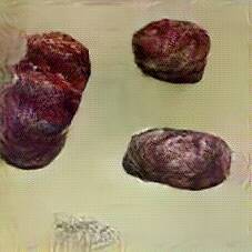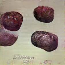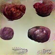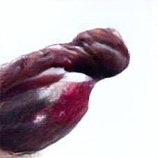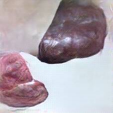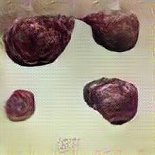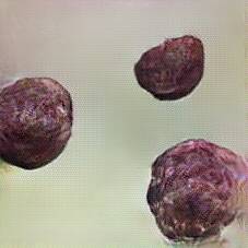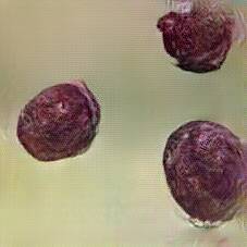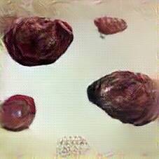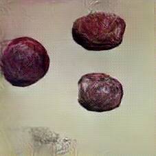 Below are 40 iterations of showing how the neural model learned to represent this class. The visualizations below show the maximally activated representations of what makes Blood Sausage look like Blood Sausage
