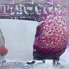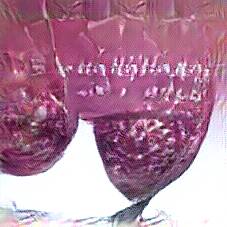 Below are 40 iterations of showing how the neural model learned to represent this class. The visualizations below show the maximally activated representations of what makes Bohemian Glass look like Bohemian Glass