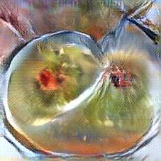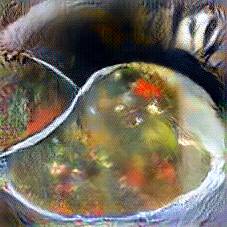 This class was learned from 76 images of Bouneschlupp. The visualizations below show the maximally activated representations of what makes Bouneschlupp look like Bouneschlupp. Each image begins with a randomly-seeded noise image, which leads to a slightly different class representation. Below are 12 activations created from 12 random noise images.