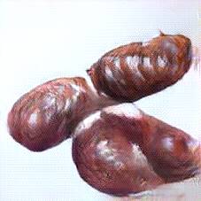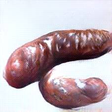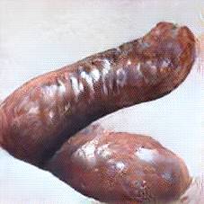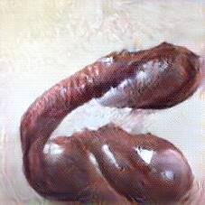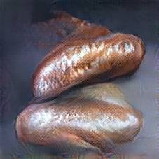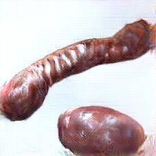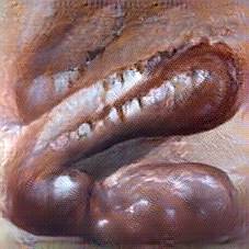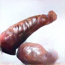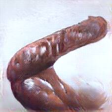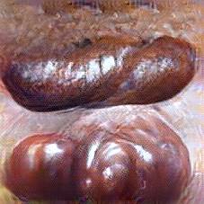 Below are 40 iterations of showing how the neural model learned to represent this class. The visualizations below show the maximally activated representations of what makes Bratwurst look like Bratwurst