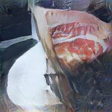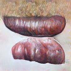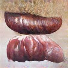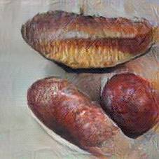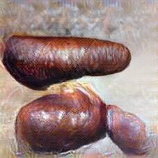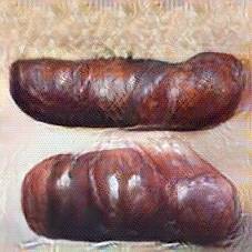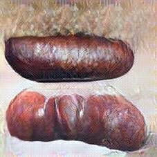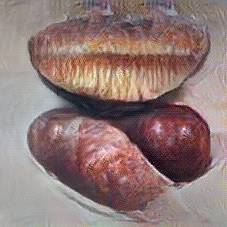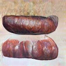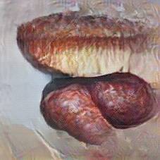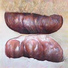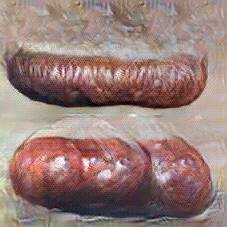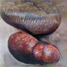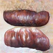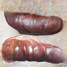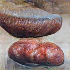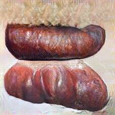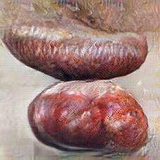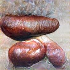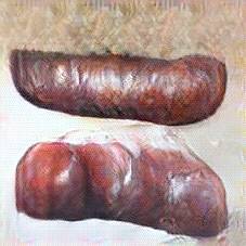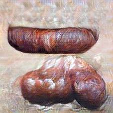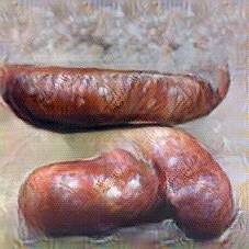 Below are 40 iterations of showing how the neural model learned to represent this class. The visualizations below show the maximally activated representations of what makes Bratwurst look like Bratwurst