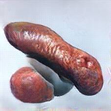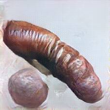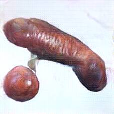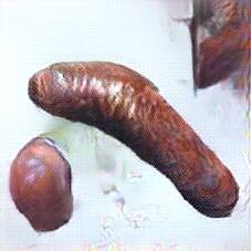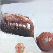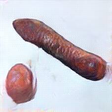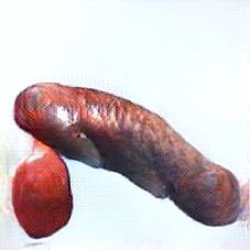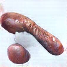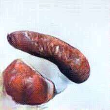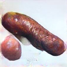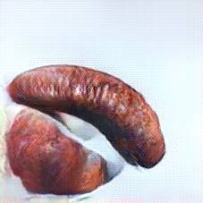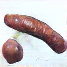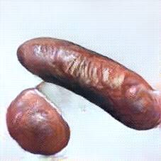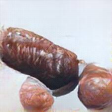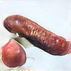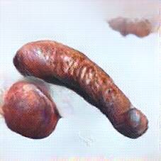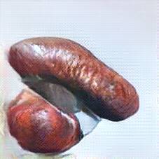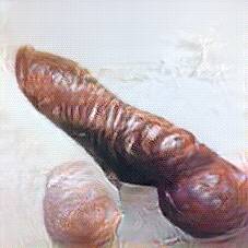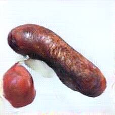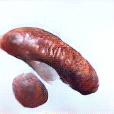 Below are 40 iterations of showing how the neural model learned to represent this class. The visualizations below show the maximally activated representations of what makes Bratwurst look like Bratwurst