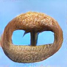 Below are 40 iterations of showing how the neural model learned to represent this class. The visualizations below show the maximally activated representations of what makes Brezel look like Brezel