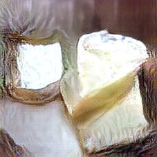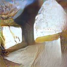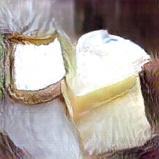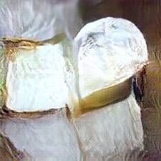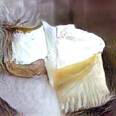 Below are 40 iterations of showing how the neural model learned to represent this class. The visualizations below show the maximally activated representations of what makes Brie look like Brie