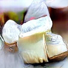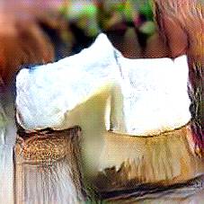 This class was learned from 103 images of Brie. The visualizations below show the maximally activated representations of what makes Brie look like Brie. Each image begins with a randomly-seeded noise image, which leads to a slightly different class representation. Below are 12 activations created from 12 random noise images.