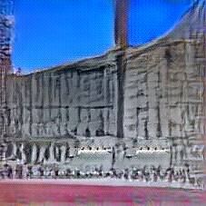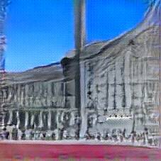 Below are 40 iterations of showing how the neural model learned to represent this class. The visualizations below show the maximally activated representations of what makes Buckingham Palace look like Buckingham Palace