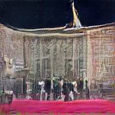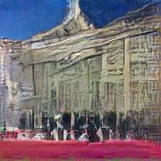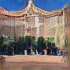 Below are 40 iterations of showing how the neural model learned to represent this class. The visualizations below show the maximally activated representations of what makes Buckingham Palace look like Buckingham Palace