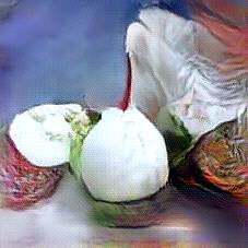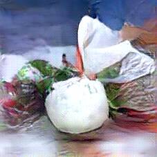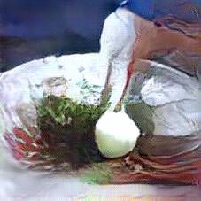 Below are 40 iterations of showing how the neural model learned to represent this class. The visualizations below show the maximally activated representations of what makes Burrata look like Burrata
