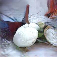 Below are 40 iterations of showing how the neural model learned to represent this class. The visualizations below show the maximally activated representations of what makes Burrata look like Burrata