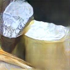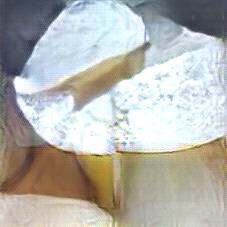 Below are 40 iterations of showing how the neural model learned to represent this class. The visualizations below show the maximally activated representations of what makes Camembert look like Camembert