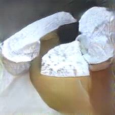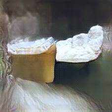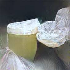 Below are 40 iterations of showing how the neural model learned to represent this class. The visualizations below show the maximally activated representations of what makes Camembert look like Camembert
