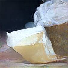 Below are 40 iterations of showing how the neural model learned to represent this class. The visualizations below show the maximally activated representations of what makes Camembert look like Camembert