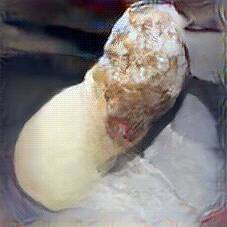 Below are 40 iterations of showing how the neural model learned to represent this class. The visualizations below show the maximally activated representations of what makes Cepelinai look like Cepelinai