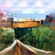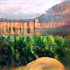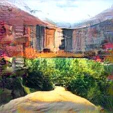 Below are 40 iterations of showing how the neural model learned to represent this class. The visualizations below show the maximally activated representations of what makes Alhambra look like Alhambra
