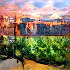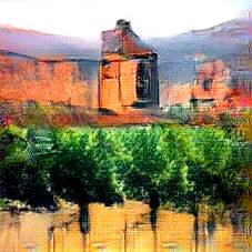 Below are 40 iterations of showing how the neural model learned to represent this class. The visualizations below show the maximally activated representations of what makes Alhambra look like Alhambra