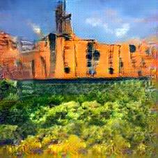 Below are 40 iterations of showing how the neural model learned to represent this class. The visualizations below show the maximally activated representations of what makes Alhambra look like Alhambra