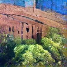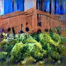 Below are 40 iterations of showing how the neural model learned to represent this class. The visualizations below show the maximally activated representations of what makes Alhambra look like Alhambra