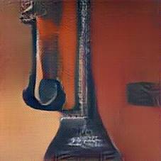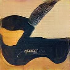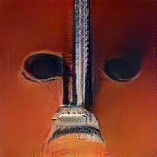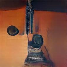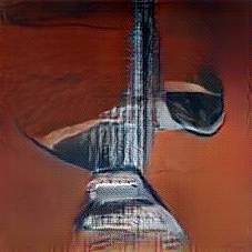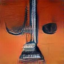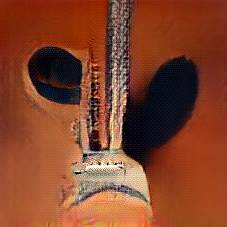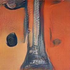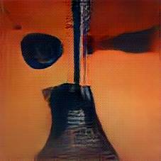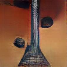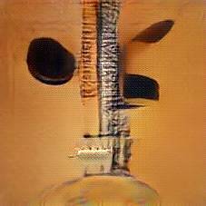 Below are 40 iterations of showing how the neural model learned to represent this class. The visualizations below show the maximally activated representations of what makes Guitar look like Guitar