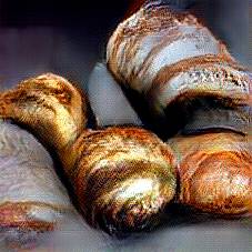 Below are 40 iterations of showing how the neural model learned to represent this class. The visualizations below show the maximally activated representations of what makes Cozonac (Type of Stollen) look like Cozonac (Type of Stollen)