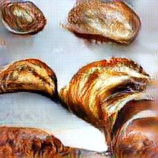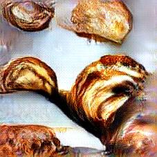 Below are 40 iterations of showing how the neural model learned to represent this class. The visualizations below show the maximally activated representations of what makes Cozonac (Type of Stollen) look like Cozonac (Type of Stollen)
