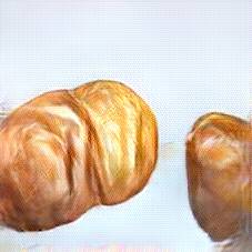 Below are 40 iterations of showing how the neural model learned to represent this class. The visualizations below show the maximally activated representations of what makes Croissant look like Croissant