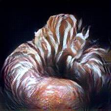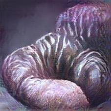 Below are 40 iterations of showing how the neural model learned to represent this class. The visualizations below show the maximally activated representations of what makes Croissant look like Croissant