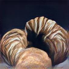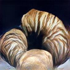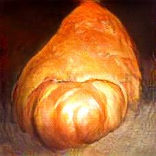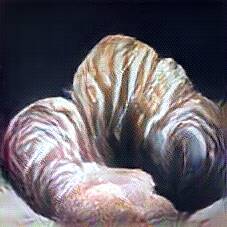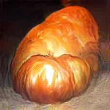 Below are 40 iterations of showing how the neural model learned to represent this class. The visualizations below show the maximally activated representations of what makes Croissant look like Croissant