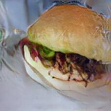 Below are 40 iterations of showing how the neural model learned to represent this class. The visualizations below show the maximally activated representations of what makes Döner look like Döner