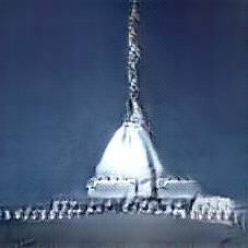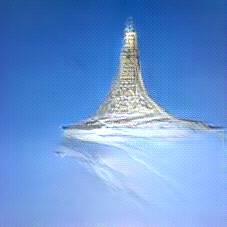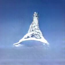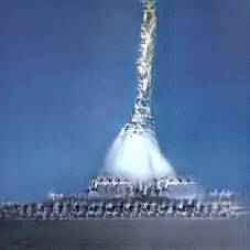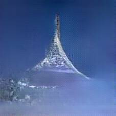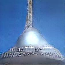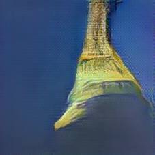 Below are 40 iterations of showing how the neural model learned to represent this class. The visualizations below show the maximally activated representations of what makes Eiffel Tower look like Eiffel Tower