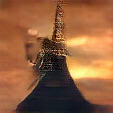 Below are 40 iterations of showing how the neural model learned to represent this class. The visualizations below show the maximally activated representations of what makes Eiffel Tower look like Eiffel Tower