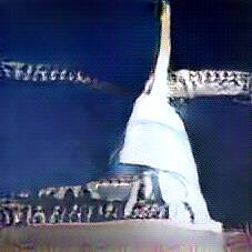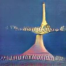 Below are 40 iterations of showing how the neural model learned to represent this class. The visualizations below show the maximally activated representations of what makes Eiffel Tower look like Eiffel Tower