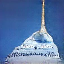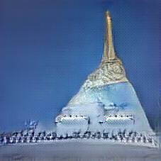 Below are 40 iterations of showing how the neural model learned to represent this class. The visualizations below show the maximally activated representations of what makes Eiffel Tower look like Eiffel Tower