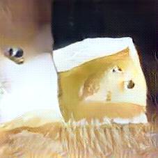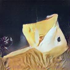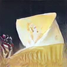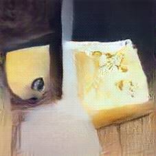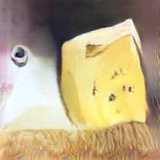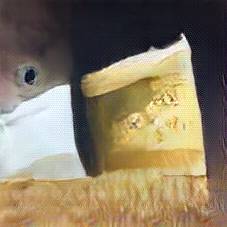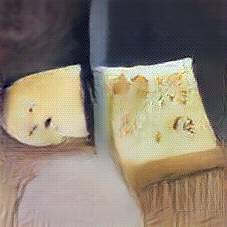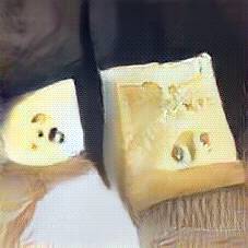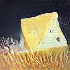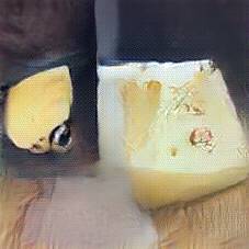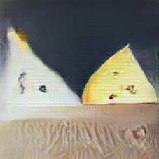 Below are 40 iterations of showing how the neural model learned to represent this class. The visualizations below show the maximally activated representations of what makes Emmenthaler look like Emmenthaler