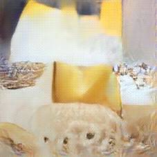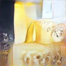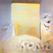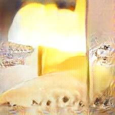 Below are 40 iterations of showing how the neural model learned to represent this class. The visualizations below show the maximally activated representations of what makes Emmenthaler look like Emmenthaler