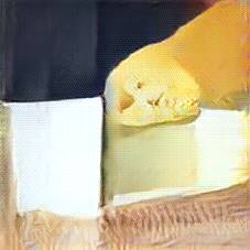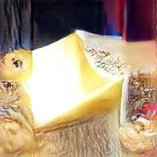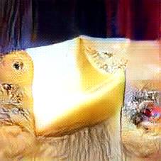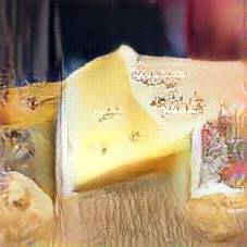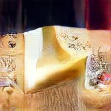 Below are 40 iterations of showing how the neural model learned to represent this class. The visualizations below show the maximally activated representations of what makes Emmenthaler look like Emmenthaler