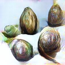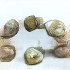 Below are 40 iterations of showing how the neural model learned to represent this class. The visualizations below show the maximally activated representations of what makes Escargot look like Escargot