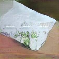 Below are 40 iterations of showing how the neural model learned to represent this class. The visualizations below show the maximally activated representations of what makes Feta Cheese look like Feta Cheese
