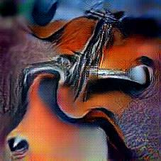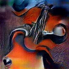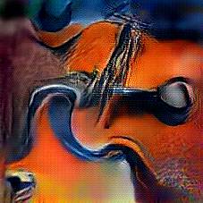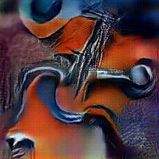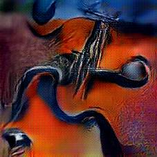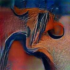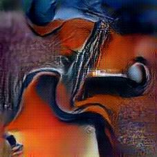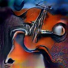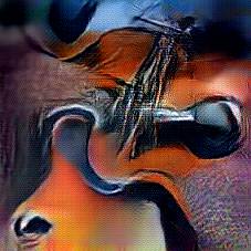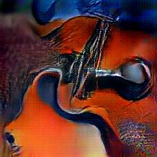 Below are 40 iterations of showing how the neural model learned to represent this class. The visualizations below show the maximally activated representations of what makes Fiddle look like Fiddle