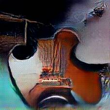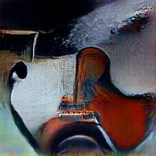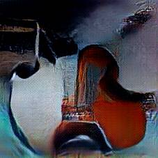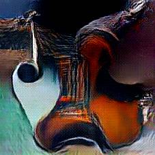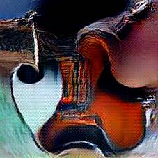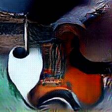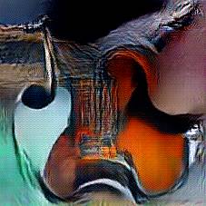 Below are 40 iterations of showing how the neural model learned to represent this class. The visualizations below show the maximally activated representations of what makes Fiddle look like Fiddle