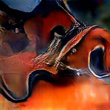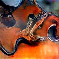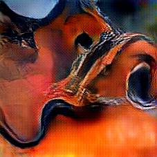 Below are 40 iterations of showing how the neural model learned to represent this class. The visualizations below show the maximally activated representations of what makes Fiddle look like Fiddle