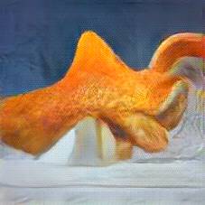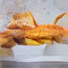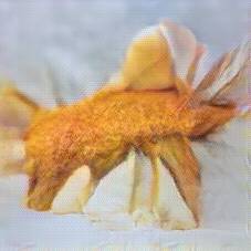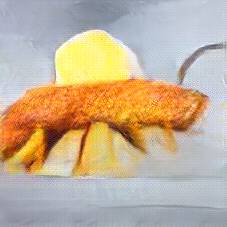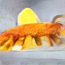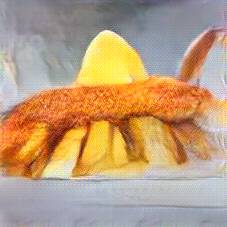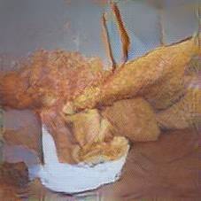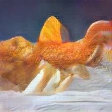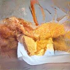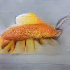 Below are 40 iterations of showing how the neural model learned to represent this class. The visualizations below show the maximally activated representations of what makes Fish and Chips look like Fish and Chips